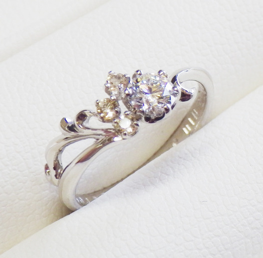 流線型のフォルムが美しい、ブラウンダイヤモンドをあしらった婚約指輪。