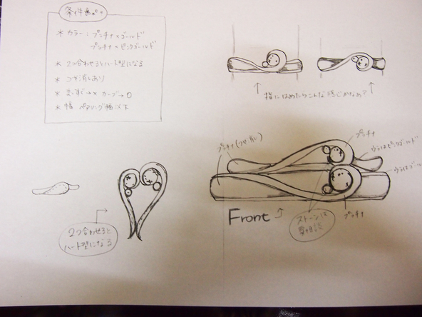 実際にお客様が持ち込まれたデザイン画です。 明確なイメージがある場合はラフでもいいのでお持ちいただくと打ち合わせおよびお見積もりがスムーズです。