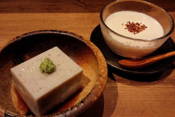 常陸秋そばを使用した粗碾きの蕎麦豆腐と蕎麦ブランマンジェも人気です。