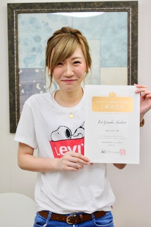ネイリスト技能検定試験1級合格の生徒さん。まずはお気軽にご連絡ください♪