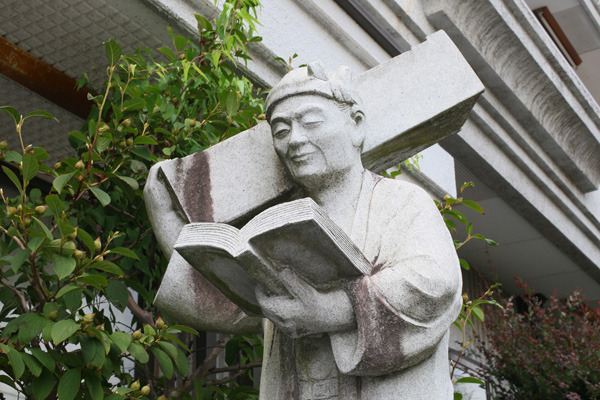 事務所わきには、大工をしながら勉学に励んだ先人の石像があり「努力は天才に勝る」の文字が刻まれています