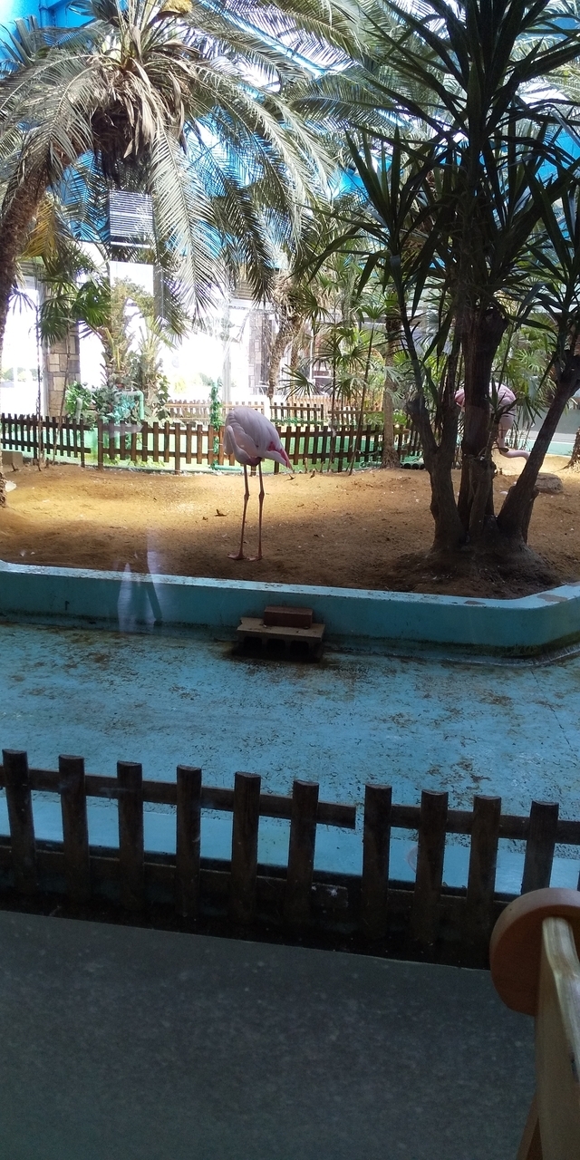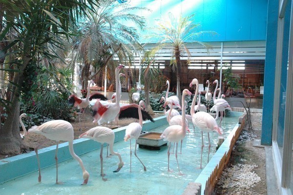 本物のフラミンゴを眺めながら名物カニピラフをお楽しみください。