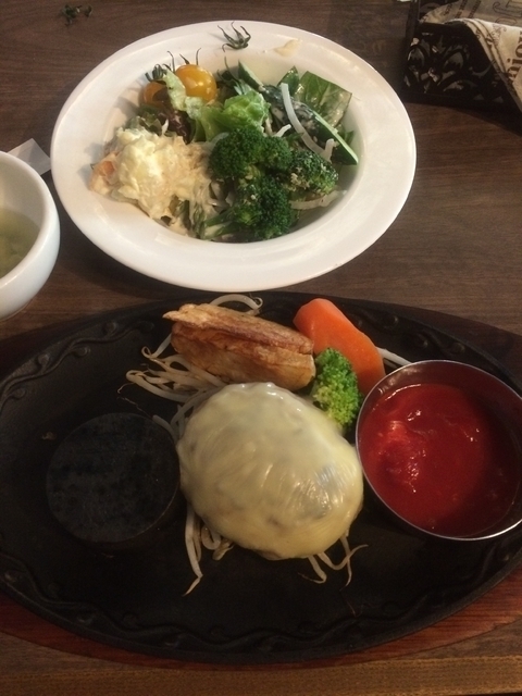 ハンバーグはもちろん美味しいです。サラダバーがいい!ドレッシングも種類が豊富。食べ過ぎました。フルーツがあるともっといいな(^_^)