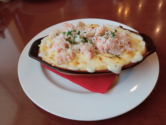 日曜の13時過ぎに行きました。 あまり混んでおらず、すぐ席に案内されました。 カニピラフとカニグラタンを注文。 提供も早かったです。 ボリュームは少なめ、味は美味しかったです。 お値段は少々お高めかなと。