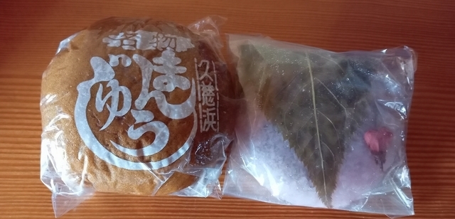 ここの定番和菓子「名物久慈浜まんじゅう」と期間限定の「さくら餅」を購入しました。生地に道明寺粉を使ったさくら餅で、塩漬けした桜がアクセントの和菓子で美味しいです!!