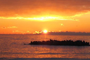 水平線からゆっくり昇る優しい光。一日の始まりを迎える心静かなひととき。目の前で日の出が望めます。