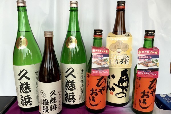 ◆オリジナル 久慈浜浪漫…1300円◆久慈浜(1升瓶)…2100円 ◆ひやおろし(季節限定品)…1200円◆奥の松…2000円◆さくら吟醸…1700円(税込価格)など。