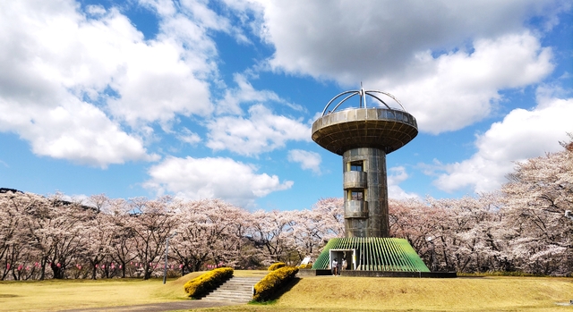 平成5年4月に開園されたパノラマ公園は十王ダムを見下ろす高台にあります。面積約4.4haの広さで、公園内の中央にある高さ20mのUFO型展望台がシンボルタワーとなっています。常磐自動車道十王トンネルの真上にある展望台からは、パノラマの景色をはじめ、日立市内を中心とした夜景も眺められます。光量はそれほど多くありませんが、早い時間帯であれば展望台のライトアップも観賞できます。展望台の周囲は平坦な芝生広場が広がり、春にはたくさんの桜と、4月から10月には次々といくつもの種類の花々が咲き、とても綺麗◎。イベント広場では芝生の上で憩いのイベントステージもあり、催しものも盛り沢山です♪