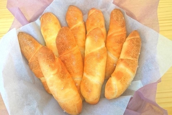 ◆塩ぱん 【170円】 ⚪たっぷりのバターと二種類の岩塩を使い焼き上げています‼外はカリッ、中はしっとり弾力のある生地に仕上げています。リピーターが多くとても人気のパンです❗