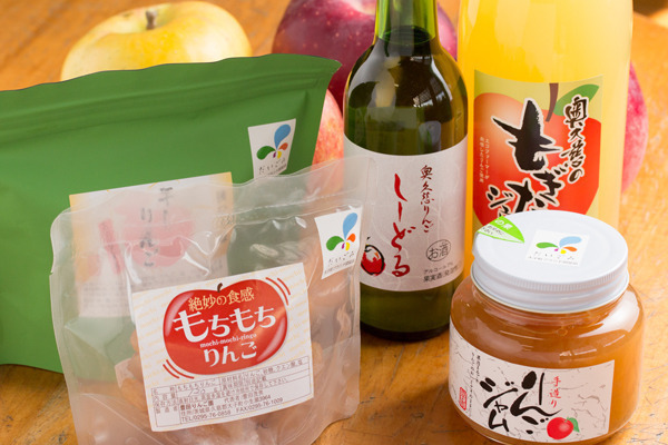 ジュース、お酒、ジャム、洋菓子など、りんご製品を多数ご用意しております。お土産に好評です!