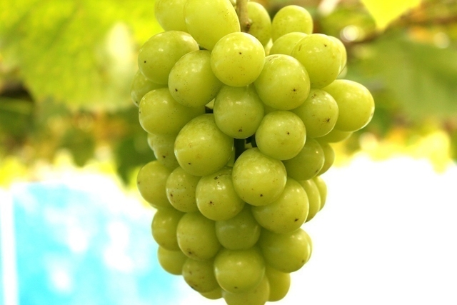 果肉の詰まったシャインマスカット。フルーティーな香りと甘みがやみつきに