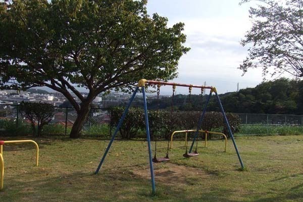 ブランコ、鉄棒、砂場が揃い、公園隣の広場には景色を眺めながら休憩できるように、あずまやが設置されています。