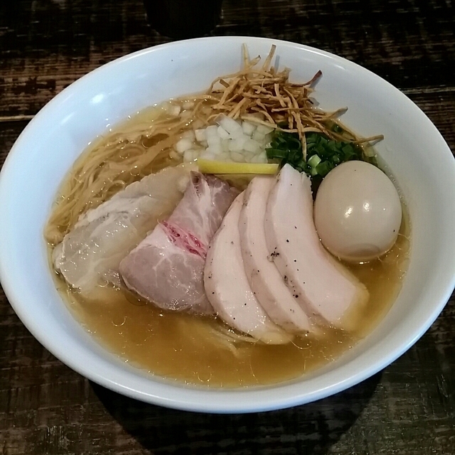 ●特製塩そば1000円 スープは、鶏メインの清湯。 豚、魚介、野菜など、 いろいろな味がでて、 少し甘めの美味しいスープです。 麺は細麺ストレート。 スープとの相性も良い。 トッピングは、 鶏チャーシューがメインで3種類。 その他、味玉、刻みネギなど。 アッサリしているので、 ブラックペッパーなどを 足してみると良い。