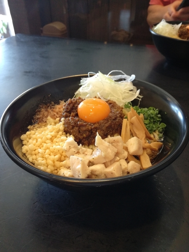 混ぜそばが美味しいとの仕事仲間からの情報でラーメン好きの友人とお昼に伺いました。限定のカレー風味の混ぜそばをいただきました。とても私の好みの味で夢中で完食。満足な一杯でした。