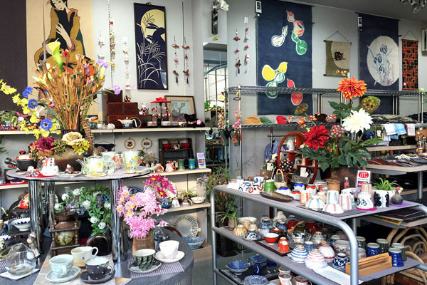 <1F>茶碗や湯呑み、マグカップ、皿類などの食器とクロス、ランチョンマット、のれん、タペストリー、かご、etc…オシャレな和雑貨や小物類が並んでいます。毎年3月には“おひなさま”の展示もあり、たくさんのお客様にご来店いただいています。