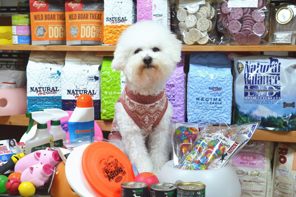 看板犬見習い中のハートが、オススメのワンちゃんグッズをご用意してお待ちしています。