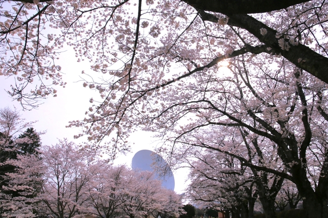 1周800mのジョギングコースやグラウンドゴルフ、お散歩や花見などでご利用いただけます。春には約300メートルの桜並木が広がり、桜越しに見える巨大なパラボラアンテナを楽しむことができます。