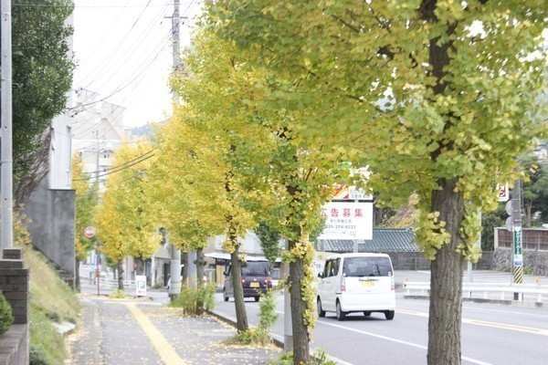 商店街のいちょう並木。緑が多く季節によって姿を変えます。