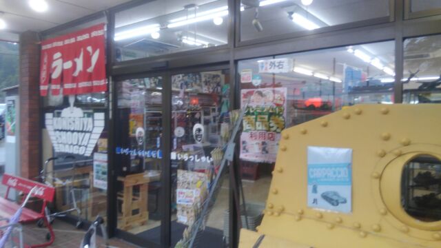 日輪寺の参詣の帰りに寄りました。某戦車アニメコーナーやミリタリーのプラモデルがたくさん飾ってあって、時間があればもっと見たかったです。その他はホントに田舎のコンビニで総菜から野菜までいろいろ売ってます。駐車場にある蕎麦屋と紹介文のラーメン屋は別物です。