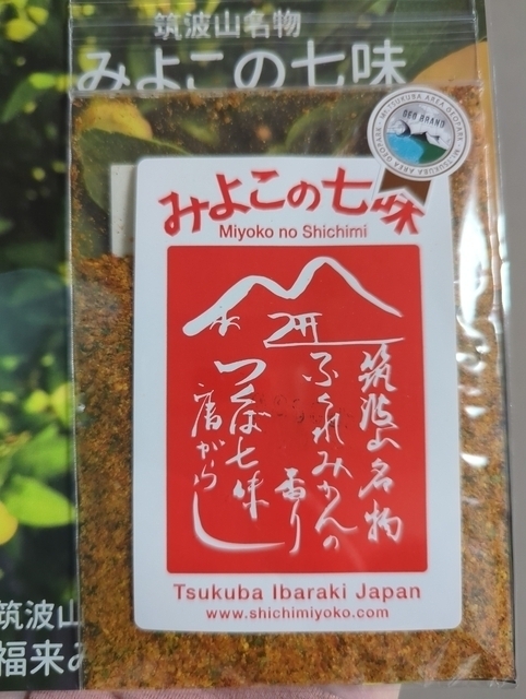 筑波山神社への初詣から参道を戻る途中、切妻屋根を設えた神橋がありますが、その脇近くにある土産物屋の当店に立ち寄りました。店頭の水槽には油売り口上で知られた四六のガマも展示されています。初詣客相手に唐辛子梅茶と漬物を振る舞っていたので、一杯相伴に預かりました。筑波山特産・福来みかんの陳皮から手作りされた七味を温かい梅茶に一振りされると辛さと温かさが増しましたが、寒夜には好適でした。この福来みかんの七味は、以前にラーメンの調味料として宣伝もしていたので、この機に土産として購入し、自宅でのラーメンの友として味わうことにしました。