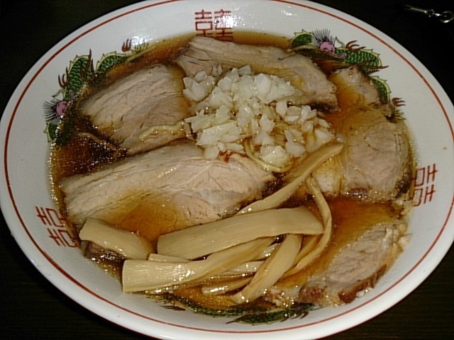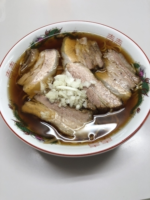 らーめん450円、チャーシュー麺650円、大盛りは100円増しです。 玉ねぎのみじん切りが乗ってくるのが珍しいですね、スープはあっさりで大盛りでもさくっと食べれてしまうぐらいです、チャーシューはトロトロで美味しいです。 駐車場は道路向かい側に共有駐車場があります。 営業時間は17時までみたいです。