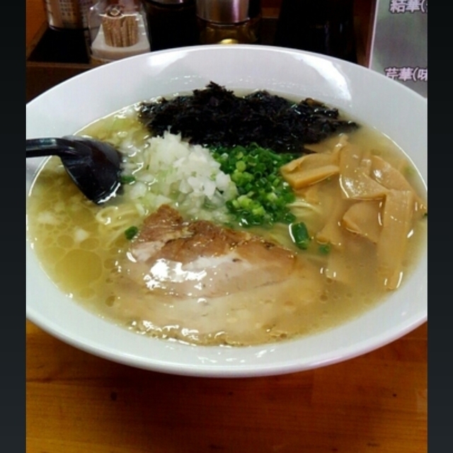 役場近くに出来た、新しいお店。県道から入ったところにあります。 あっさり塩の「仁」をオーダー。大きめの丼に、チャーシュー1枚、メンマ、岩ノリ、刻み青ネギ、刻み玉ねぎ。 スープは見た目と違い、くどさはない。麺は細麺ストレート。 ごちそうさまでした。