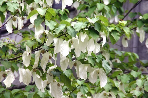 ハンカチノキ。白いハンカチが垂れているように見えるためこの名称がつきました。(見ごろ:5月上旬)