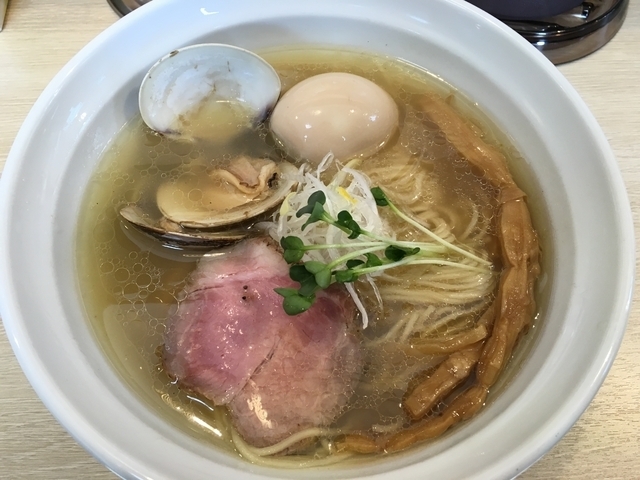 2月28日昼に初訪問、いばナビでいただいた無料券を利用、追加料金を現金で支払い蛤塩そば、味玉トッピングで注文。まずはスープから、、、ハマグリの出汁がいいですね。あっさりスープに細麺があいますね。次はデフォメニューをいただきたいと思いました。ご馳走様でした。