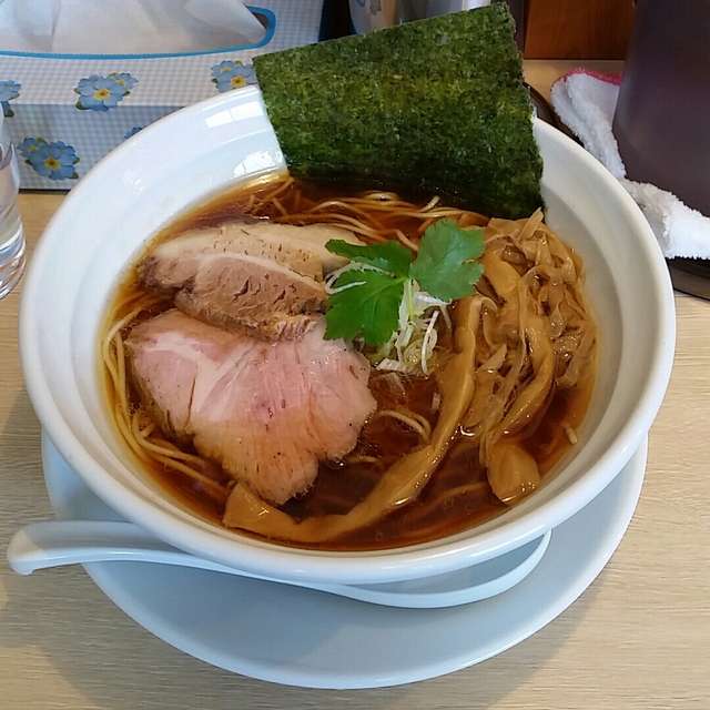 蛤醤油蕎麦にチャーシュートッピングを注文です♪ スープは蛤と醤油のバランスがよく旨い~