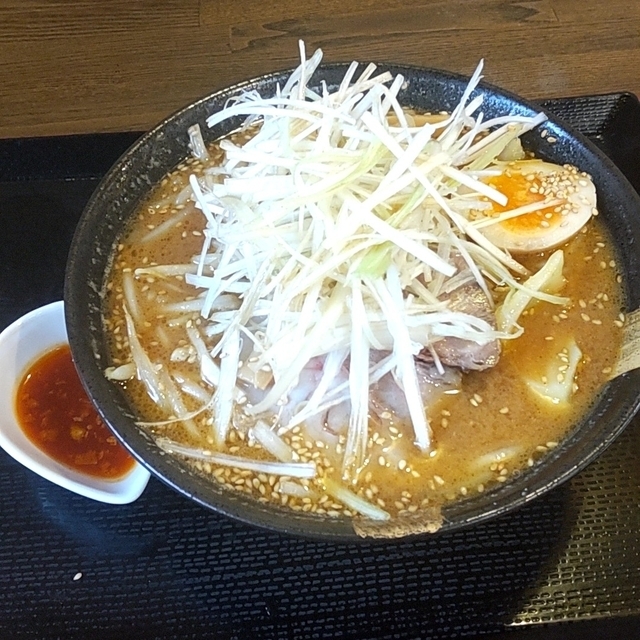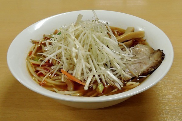 ●しもつまねぎみそラーメン 地元の新鮮なネギが大量。 みそは、やや辛めのマイルド系。辛さが足りない方は、別添えで。 麺は中太麺のやわらかめ。チャーシュー、玉子、メンマなどがトッピングされてボリューム満点。