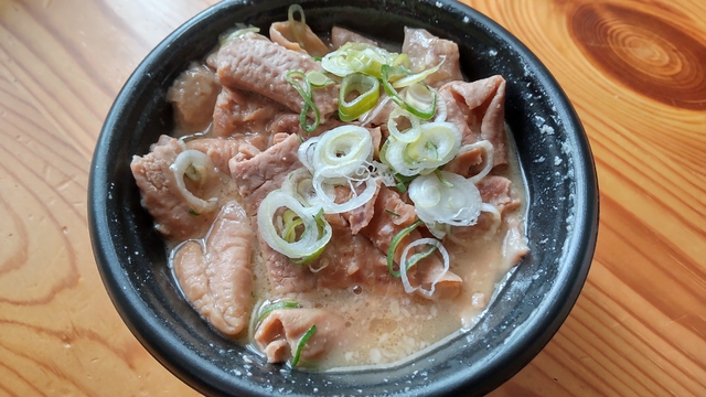 平日のお昼前、11:30ぐらいに来店しました。 まだ早かったせいか無先客でした。 もつ煮をテイクアウトしました。小もあるようです。 写真は輸送中に振動があったため見栄えがイマイチですが、しっかりした味付けと軟らかいもつ煮で臭みもなくおいしいです。量も20センチ弱の器で、一瞬小さく見えますが食べるとなかなかの量があって満足感アリです。 1品足したいときやもつ煮を食べたいときにテイクアウトできるのはありがたいので、また利用したいと思います!
