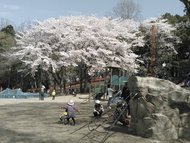 千波湖の裏手の山にあります。遊具も結構あるので小学生高学年でも楽しめるよ。 専用の駐車場もありますが、駐車可能台数が少ないのでD51の駐車場に停めるのが無難かな。 森の中なので虫が多いために虫除けスプレーが必須ですね。 写真のように桜の時期がオススメです、桜がキレイですよ~
