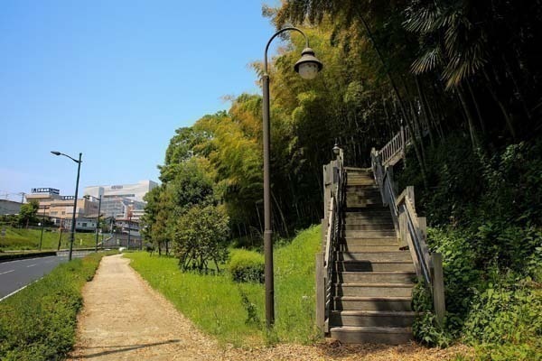 梅香トンネルの南側、水戸城の堀だったところにあり、緑に囲まれた歩道や東屋ベンチなどもある、市街地のオアシス的な場所です。樹木や草花などがたくさんある園路は、散歩コースにも最適で、中心地へつながる抜け道にもなっていますよ!