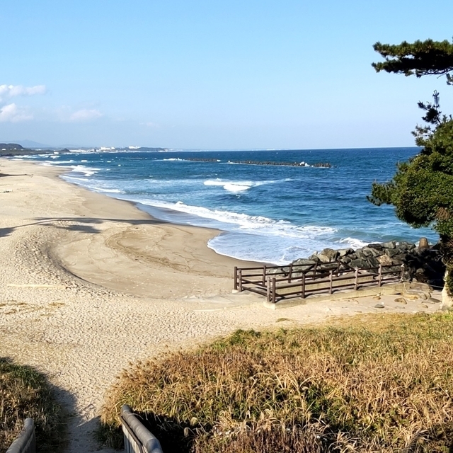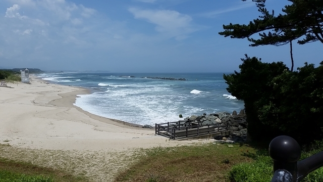 日立市の伊師浜海岸。 人気の鵜の岬から望む、伊師浜海岸。 小規模ながら、砂浜が美しく絶景です。 波もきれいです。
