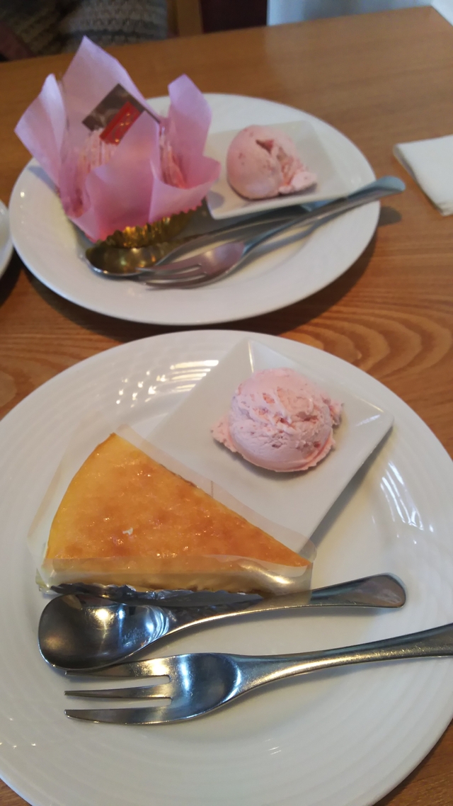 お茶しました!ショートケーキが売り切れてて残念でした(´・ω・`)ベイクドチーズケーキにしました。濃厚でボリュームもありました♪