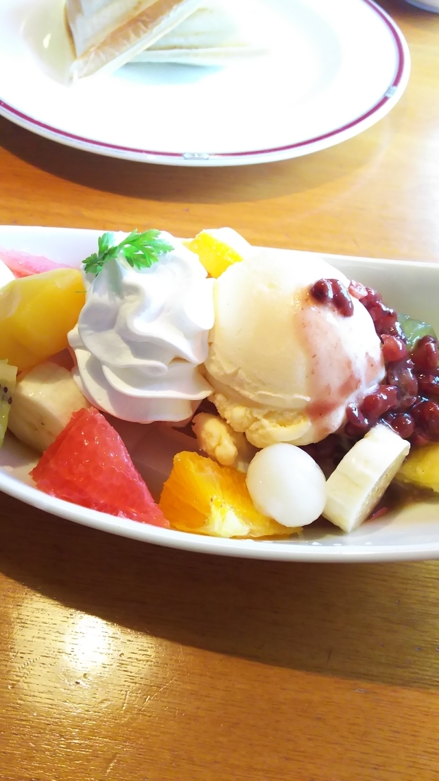 久々にスイーツ食べにいきました。 飲み物とクリームあんみつを頂きました。 ボリャームありお腹いっぱいになりました。 クリームとフルーツもたっぷりでした(^_^)v
