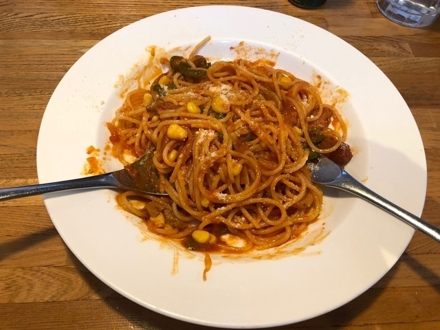先月の夜に行きました。お昼よりはすいていて良かったです。スパゲッティーにしました。サラダもついてスパゲッティーのボリュームも凄くてお腹いっぱいになりました(^^)