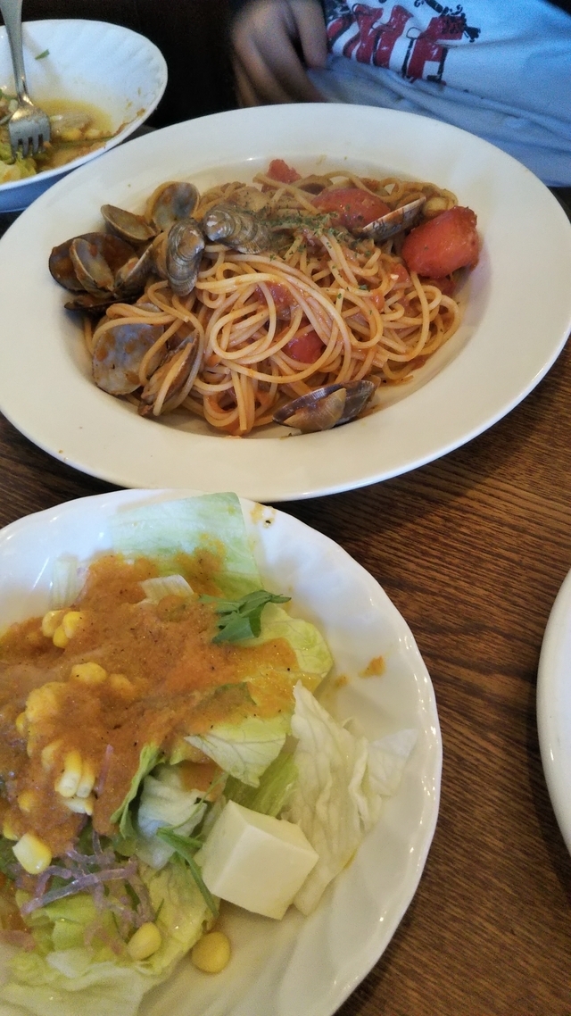 久しぶりに行きました。いつのまにか注文はタブレットでとれるようになったみたいで驚きました。以前はメニューに全て番号がふってあって、その番号で注文ができたと思います。 パスタやピラフを頼むとセットでサラダがついてきます。オーダー後すぐにサラダが届きました。本当に早かったです。ただそのサラダが水っぽくて、少し残念でした。 メインは私はピラフを頼みました。名前は忘れてしまいましたがホタテと大葉がのっていて、私の好みの味でした。