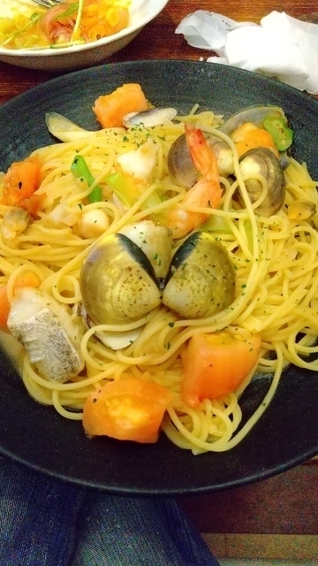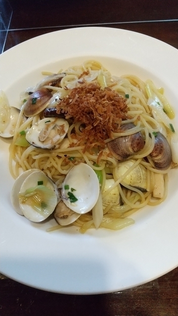 嫁さんと2人で来ました。 今回はハマグリとネギのペペロンチーネを食べました。 上にかりかりの焦がしネギが載ってるのが珍しいですね。 ハマグリも砂を噛んでおらず美味しかったです。