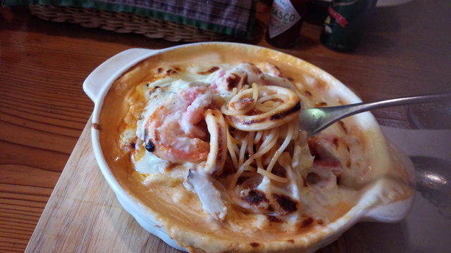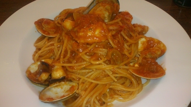 ケンミンショーで放送され 早速行って見ました。 店内は広く、とても綺麗。 迷わず〜海賊スパゲティを注文〜。 トマトソースパスタにシーフードがたくさん入ったホワイトソース。 放送される理由がわかりました。 とても〜美味く満足でした。