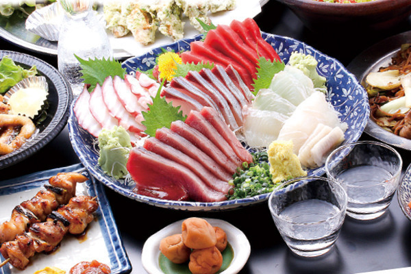 お新香・サラダ・揚物・焼鳥・刺身盛合わせ・本日の一品・鍋・〆のうどん(仕入れ状況により変更有り)