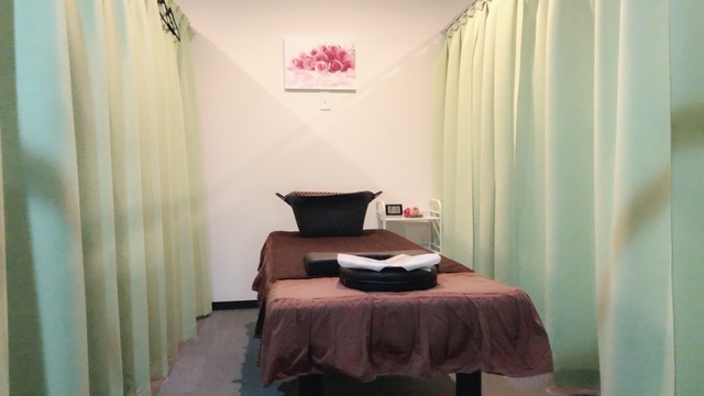 カーテンで仕切られた施術ルーム。個室感覚でゆっくりおくつろぎ下さい