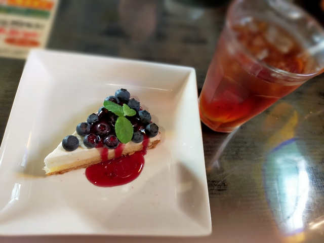 《ピッツァ マルゲリータ》 直径30cmくらいの大きなピッツァでしたが、生地が薄いので軽く食べることができました。 今回はCコースメニューをオーダーしていただきました。 ピッツァの他に、ケーキとソフトドリンクが付いて\1,595(税込)。 ピッツァはパスタに、ケーキはサラダに変更可能です。