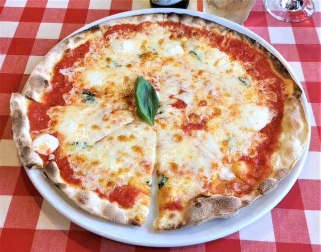 ピッツァはローマ式の薄生地タイプ。薪釜の約400度の高温でパリッと焼き上げるので香ばしさがサイコーです。