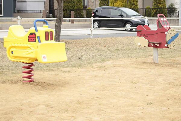 入り口を入ると大きな築山が存在感を示す、敷地一面芝を敷いた遊びやすい公園。深芝小学校の近くにあり、小学生に人気のスポットです。3,300㎡ほどの敷地は遊具スペースと広場に分かれていて、多目的に利用できます。園内にはトイレと水のみ場が完備されていて、中央付近には五郎台土地区画整理組合が寄贈した記念樹が植えられています。遊具はすべり台、ブランコ、鉄棒、スプリング遊具が2基と4種類設置されています。遊具ではありませんが、大きな築山も子どもに人気の遊び道具。スクールゾーンが近いということもあり車通りも少なく、安心して遊べる公園となっています。