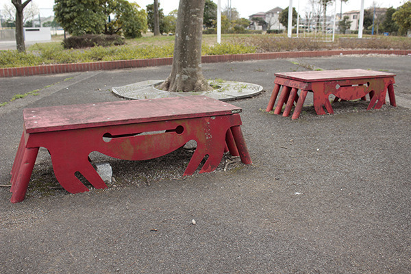カニを象ったかわいいベンチ。本公園は海に関した装飾が施されているようです。