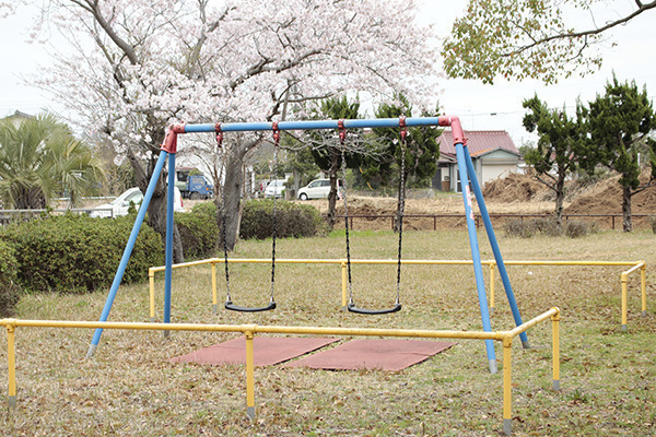 ブランコの奥にはソメイヨシノが咲き誇っています。