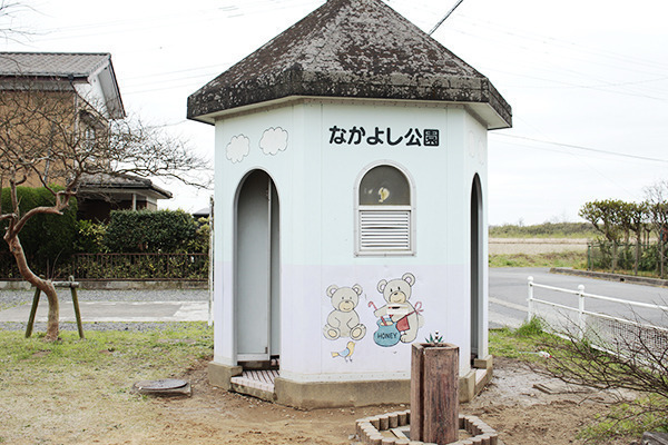 公園の隅にはシンボル的な存在のトイレ。愛らしい動物が描かれています。