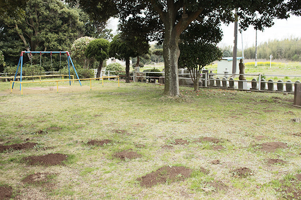 敷地の周囲にはふんだんに木々が植えられていて、園内も一面に芝生が敷き詰められている自然豊かな公園。敷地は1,800㎡ほどの大きさと、さほど大きくはありませんが、遊具の配置バランスがよいため広々と使用できるスペースがあります。置かれている遊具はすべり台、ブランコ、鉄棒の3種類。定番の遊具ですが、塗装の状態もよくとてもきれいで、清潔感があります。トイレ、水のみ場、ベンチといった公園に必要な設備も整っていて、大通りから少し入った場所にあるため車通りも少なめ。元気にお子さんを遊ばせてあげることができる場所です。