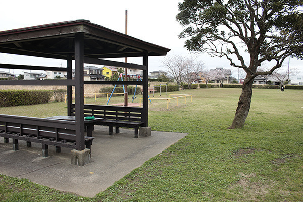 大野原南街区公園は、一面に芝生を敷き詰めた3,000㎡ほどの広々とした公園です。公園の前には約10台ほど車を停めることのできる駐車場があります。門を入ると左手に木材で造られた屋根付きの休憩所。その奥には遊具が置かれています。正面と右手には堂々とした木々が立ち並び、公園の景観をよりよいものとしています。公園の奥にはボール遊びなどにも活用できそうな、広々とした多目的スペースが広がっています。園内の周囲には木々が置かれ、春の季節には美しい桜を眺めることもできます。ブランコ、ジャングルジム、鉄棒といった3種類の遊具も置かれているので、遊具遊びを望む子ども連れの方にもオススメです。